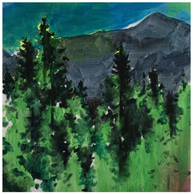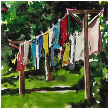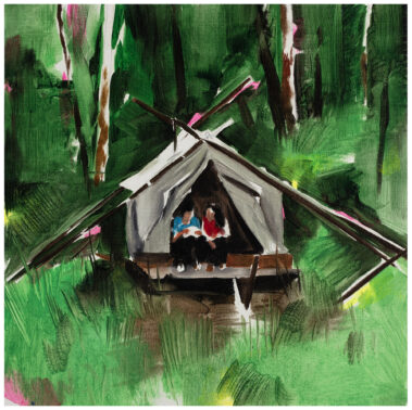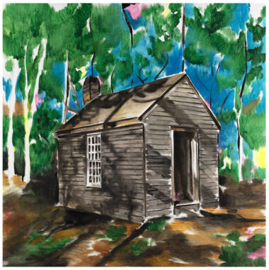 Walden is the mirror reflecting Coll’s inside, as it is the result of Thoreau’s looking at himself. Landscapes and scenes are painted on a balance between what is owned and what is not, but especially between what is owned and what is not needed, what is spare and what is missing. Therefore, Green Is Green exudes vegetation, greenery and spiritual connection to nature: all lacking features.